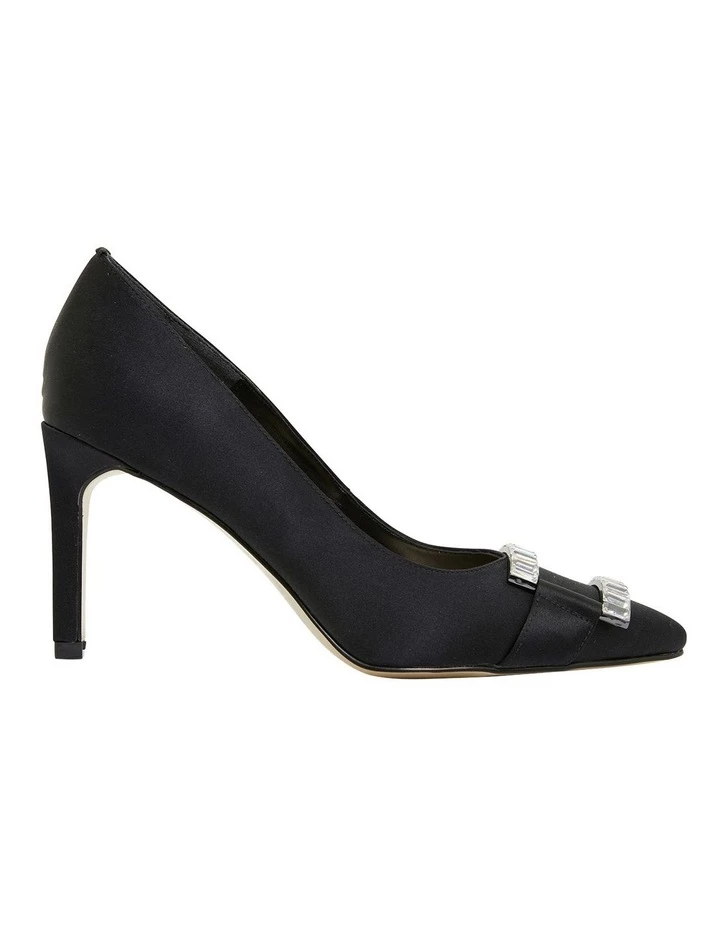 MADISON is the elevated take on a staple silhouette heel. Theyre meticulously crafted with a fabric upper thats embellished with jewels, an adjustable ankle strap, then shaped with a pointed toe and classic cone heel. Team this under event ready outfits to anchor a glamorous aesthetic.