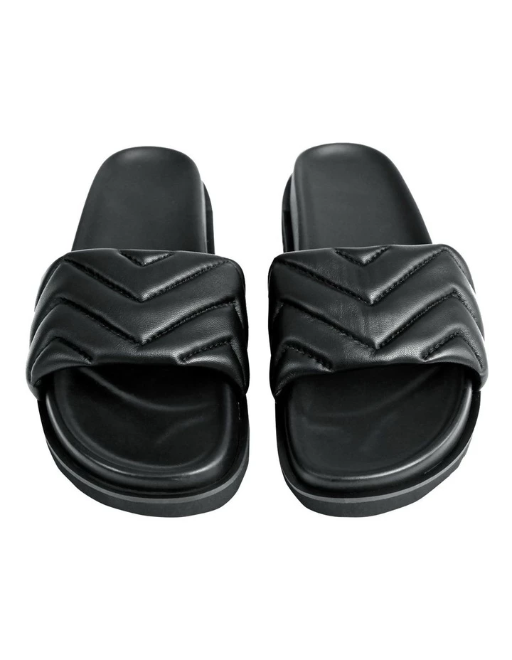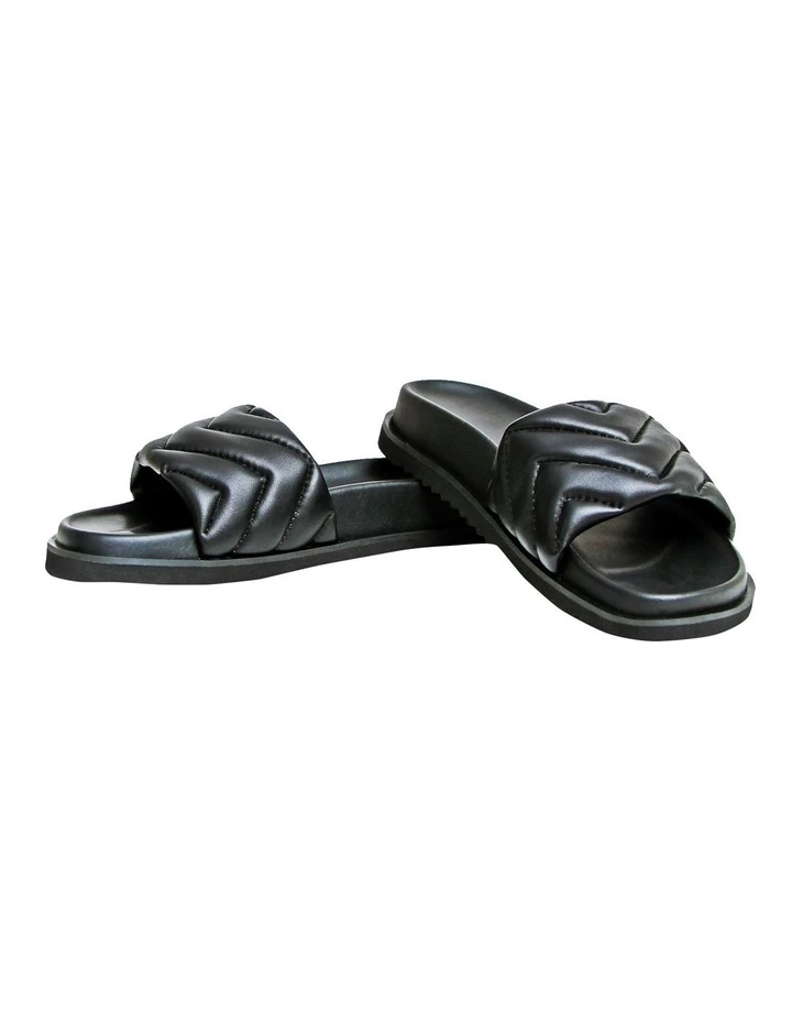 A zig-zag quilted leather upper adds plush texture to this effortlessly sophisticated take to this simple and modern Go Get Em Quilted Slide By Belle and Bloom, featuring a moulded footbed and rubber sole for all day comfort.