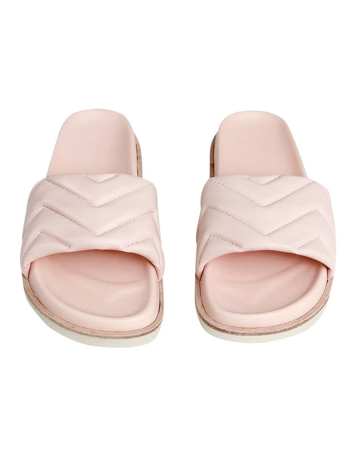 A zig-zag quilted leather upper adds plush texture to this effortlessly sophisticated take to this simple and modern Go Get Em Quilted Slide By Belle and Bloom, featuring a molded footbed and rubber sole for all day comfort.