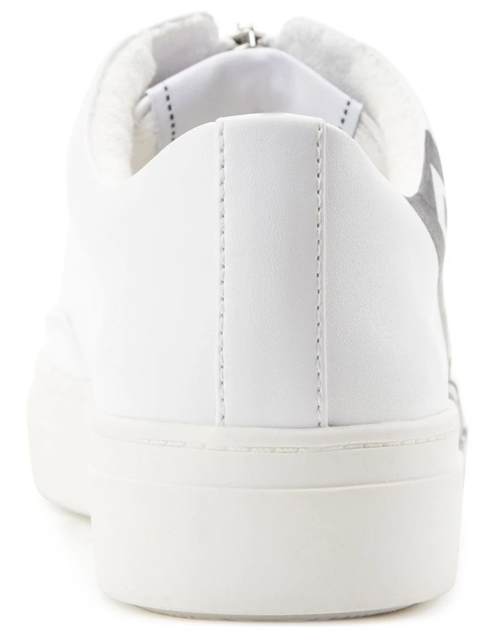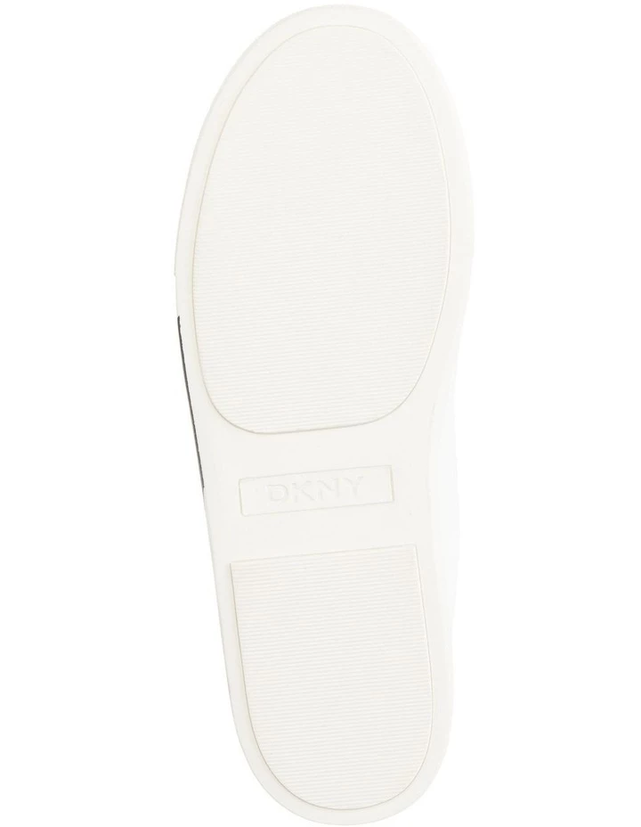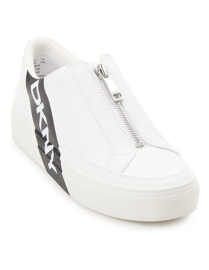 Slip on sneaker with frontal zipper closure, DKNY logo on constrasting stripe, cupsole sneaker, round toe, memory foam footbed