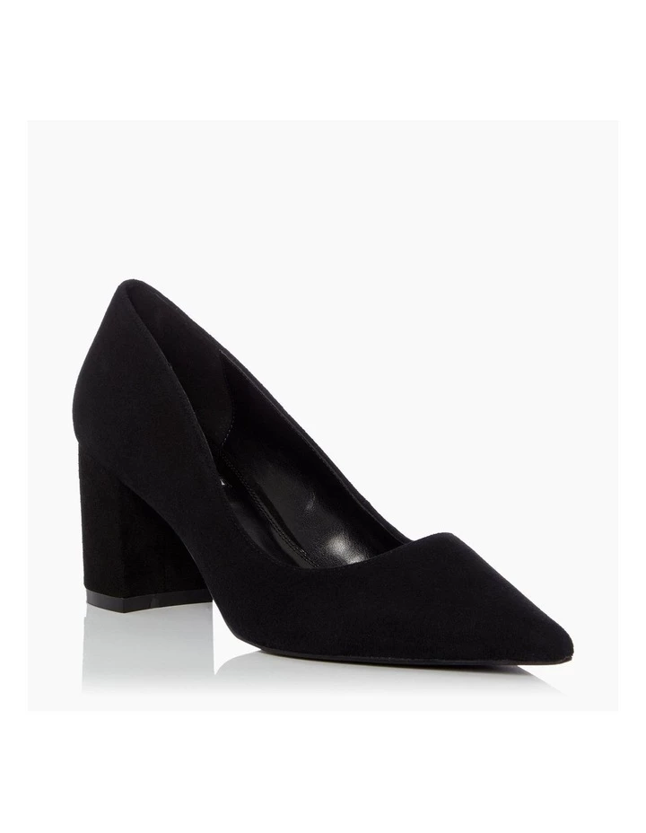 The Arve court shoe from Dune London is a versatile daytime option. Showcasing a textured upper, pointed toe and a chic mid block heel. The simple yet stylish design will style effortlessly with off-duty looks.