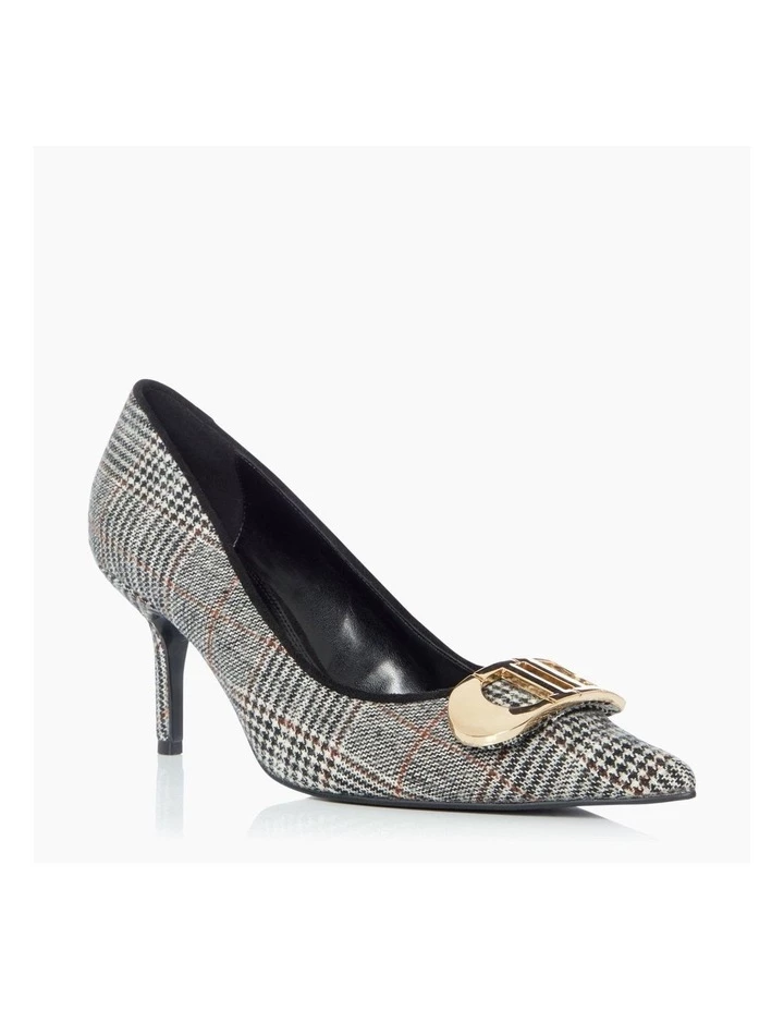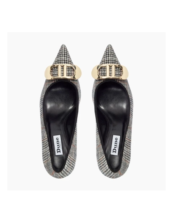 Demand attention in the Brioni stiletto heel from Dune. It rests on a slim stiletto heel and boasts a striking pointed toe. The style is complete with Dune signature hardware detailing.