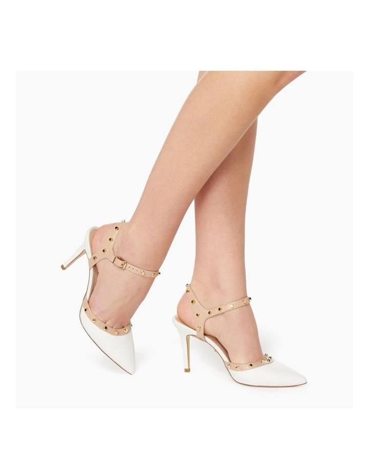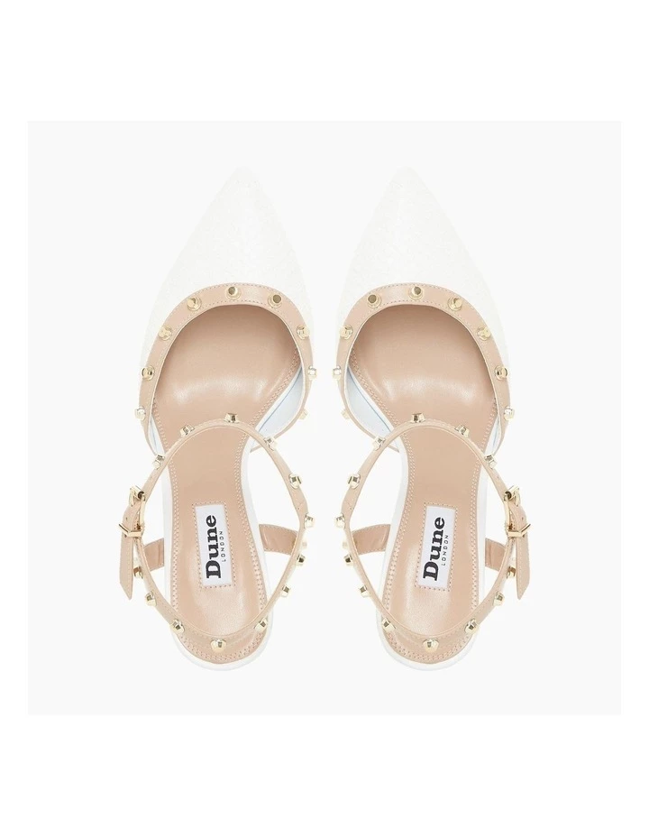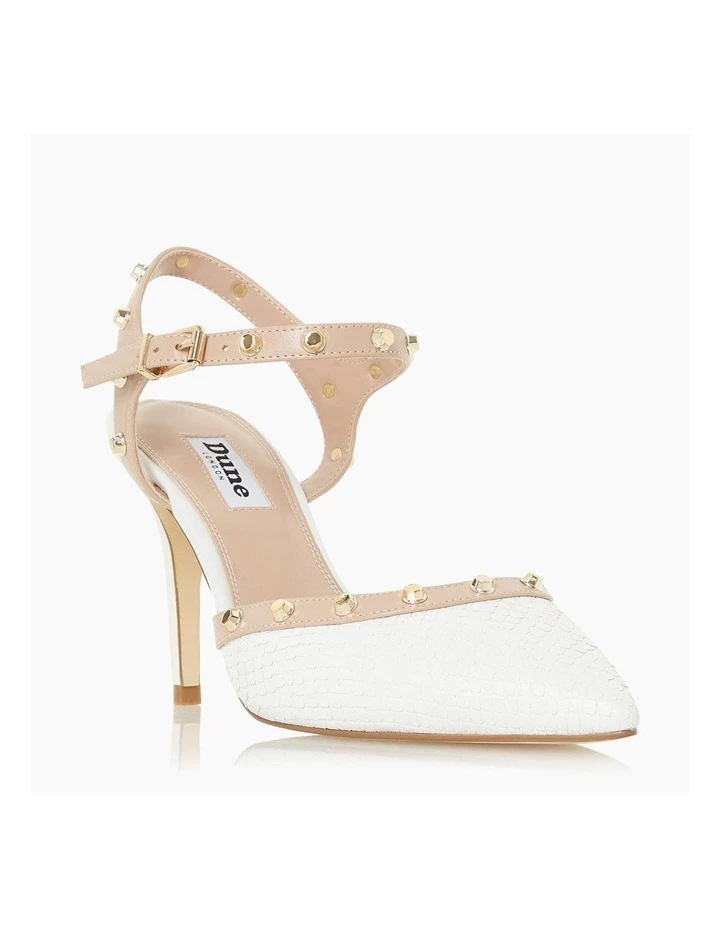 Make a statement at your next event with this sleek court shoe from Dune. Resting on a mid stiletto heel it’s defined with striking studded accents. It’s complete with a pointed toe to enhance the timeless feminine appeal.
