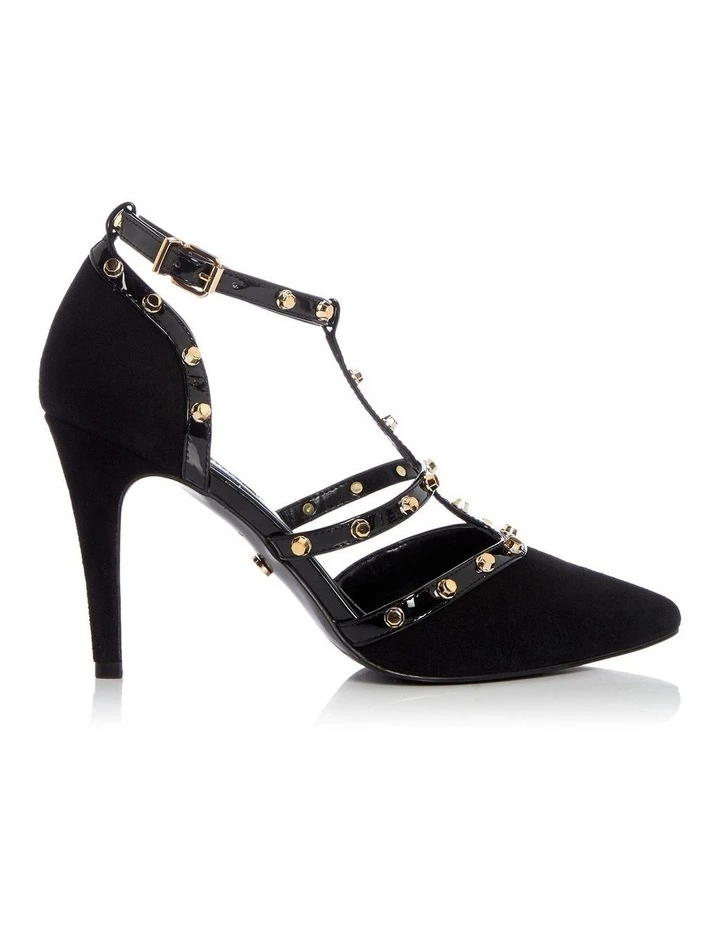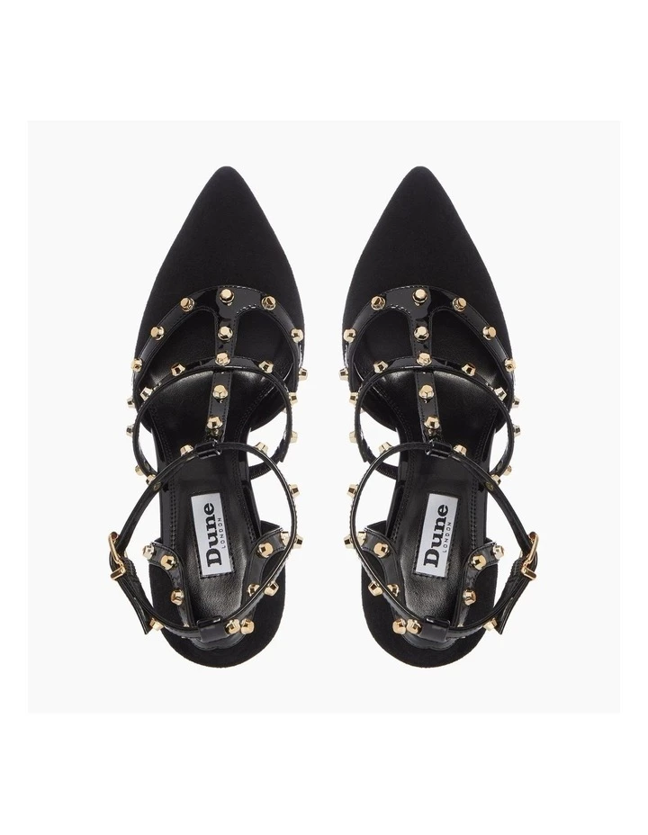 Make a statement with the stylish Clea court shoe from Dune. Featuring a striking print accented with gold-toned studs on the straps. It’s finished with a sleek pointed toe and rests on a medium stiletto heel.