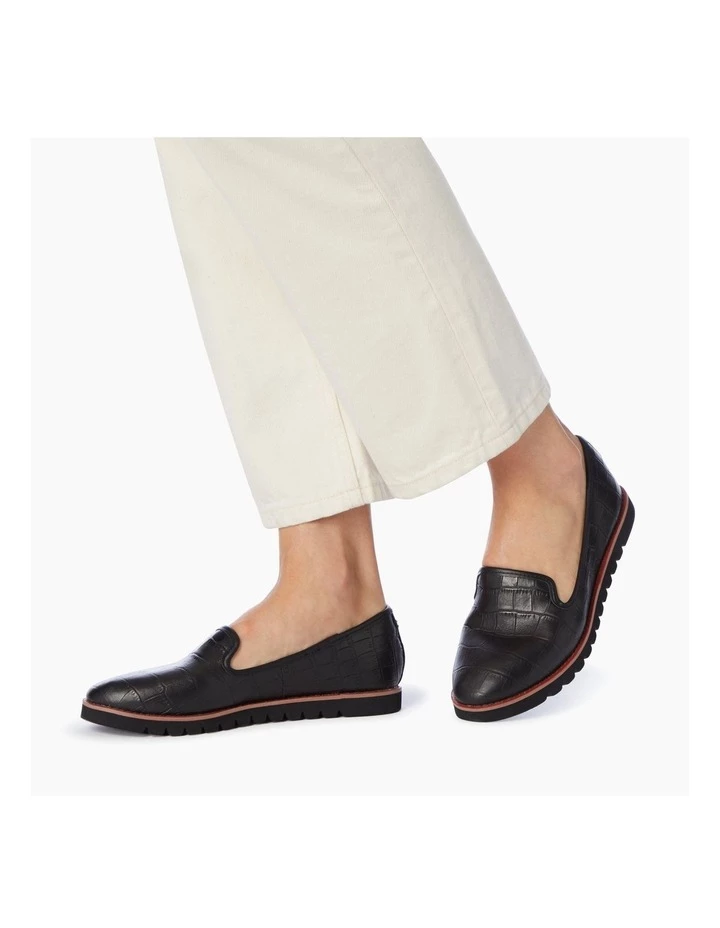 The Galleon loafer from Dune London is a versatile styling option. Showcasing a leather upper with a textured finish and contrasting sole. It features a slipper-cut design and a classic round toe.