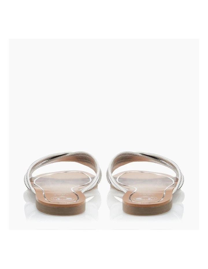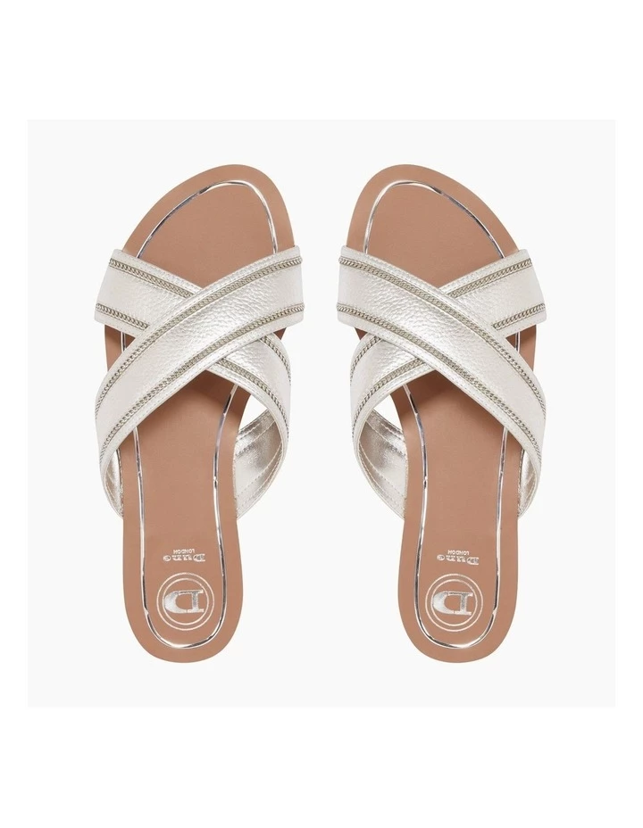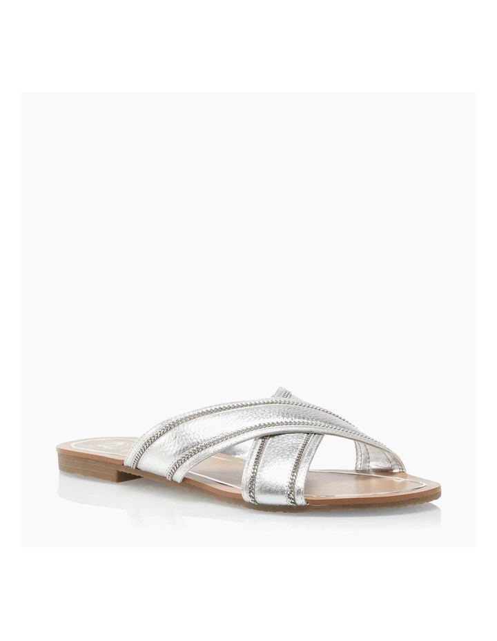 An essential update for your warm weather wardrobe. It features a cross strap design with a rounded toe. Finished with a subtle chain detailed trim.