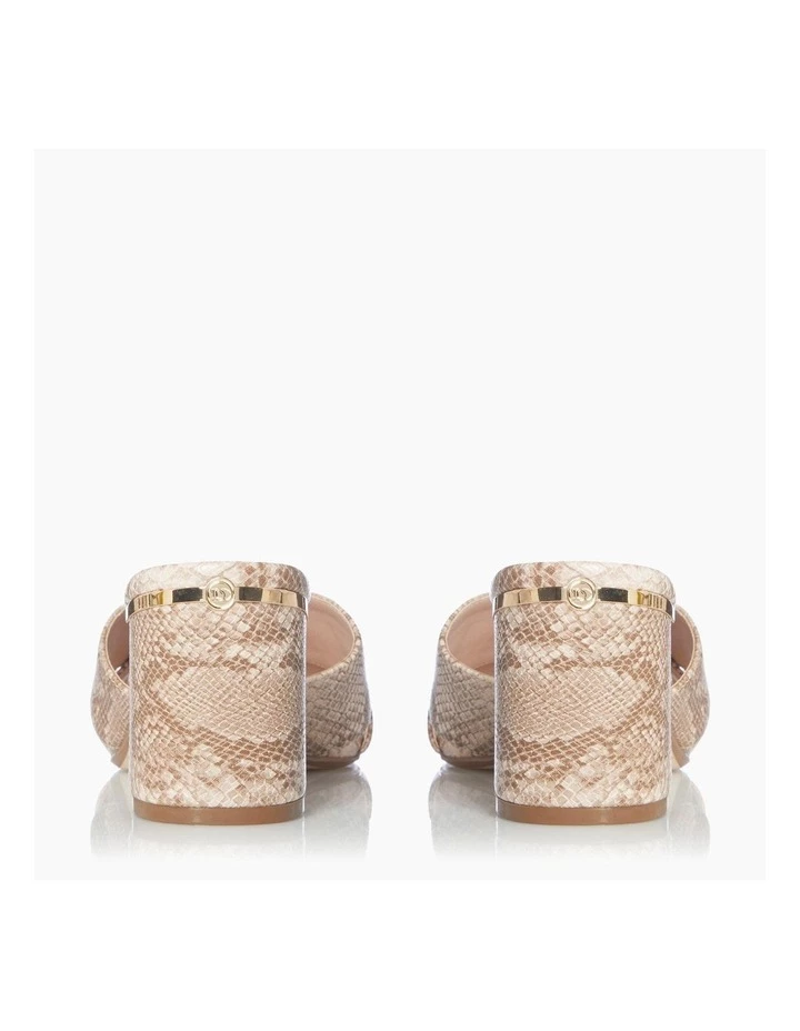 This sandal is the perfect choice for adding to your party line-up. In a classic slip on style it has hardware wrapped around the block heel. Finished with an open sandal toe and stylish cross over upper straps.