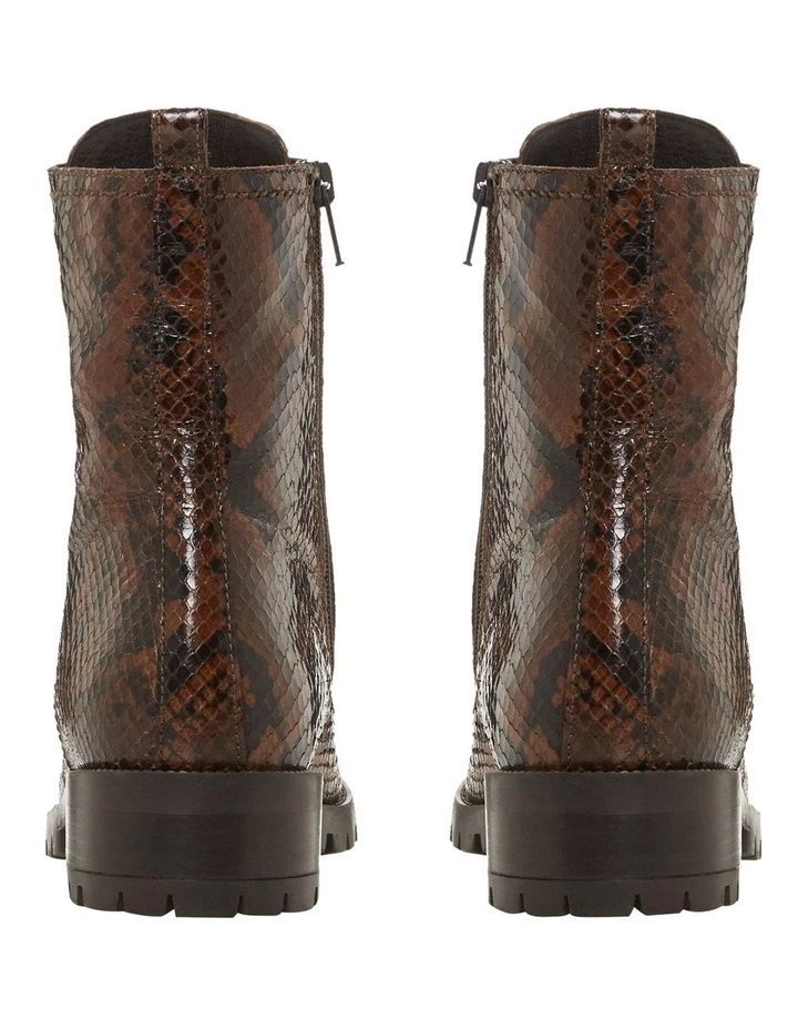 The Prestone boot from Dune will add edge to your footwear line-up. Resting on a comfortable low block heel and shaped with a round toe. It’s fitted with a pull tab and secured with a stylish lace-up fastening.