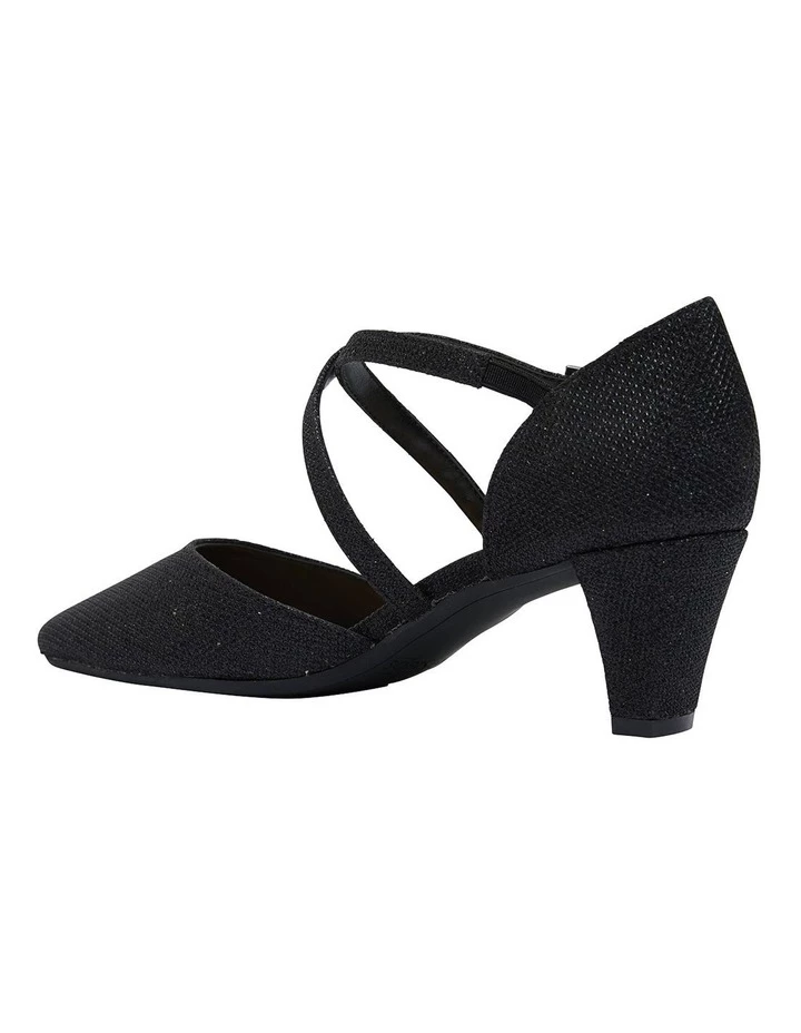 Adison is designed with a double cross strap that compliments the foot and a heel that is ideal for an all day wear. The elegant pointed toe makes it perfect for work and evenings out. Approx. 6.5cm heel height Fabric upper Synthetic lining Flexi resin grip sole Comfort fit (C-fit)