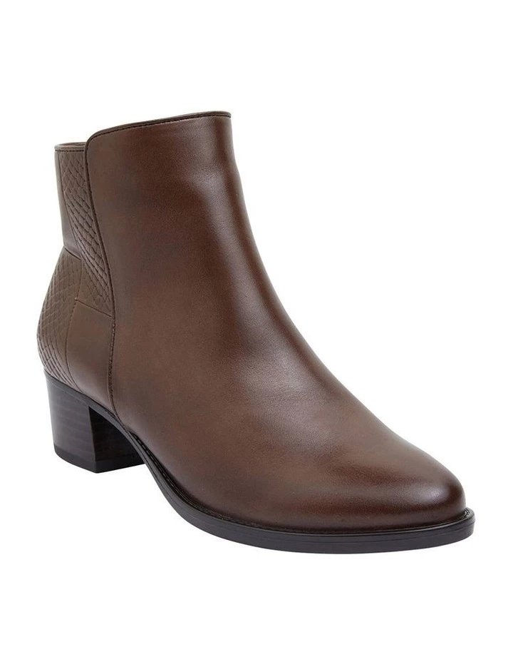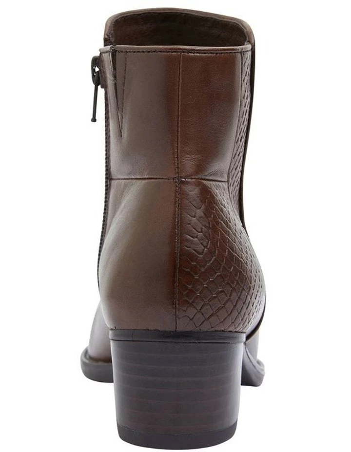 Add an elegant touch to your weekend ensenble with DAPPER. Featuring contrasting croc inspired print pannels and a low block heel, this ankle boot provides all day comfort when you need it. Pair this style with opaque stockings and your favourite print dress for a desk-to-dinner outfit you will love! Approx. 4cm heel height Leather Upper Synthetic lining Synthetic sole Comfort fit (C-fit)