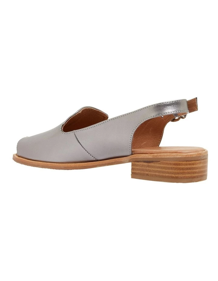 The Delaney leather sandal features a peep toe and loafer-like design with a sling back adjustable strap.