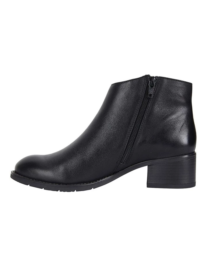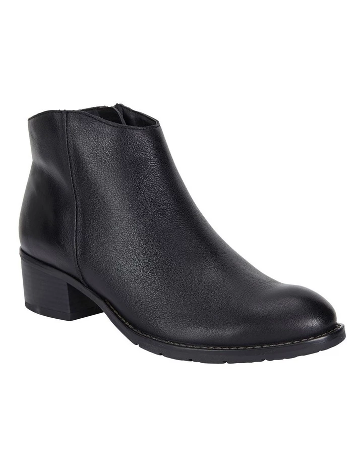 Minimalistic styling made easy, FRANKLIN is designed with a stacked block heel, flattering rounded top line and a contrast stich detail that will perfectly compliment your winter ensemble. Approx 4cm heel height Leather upper Synthetic lining Synthetic sole