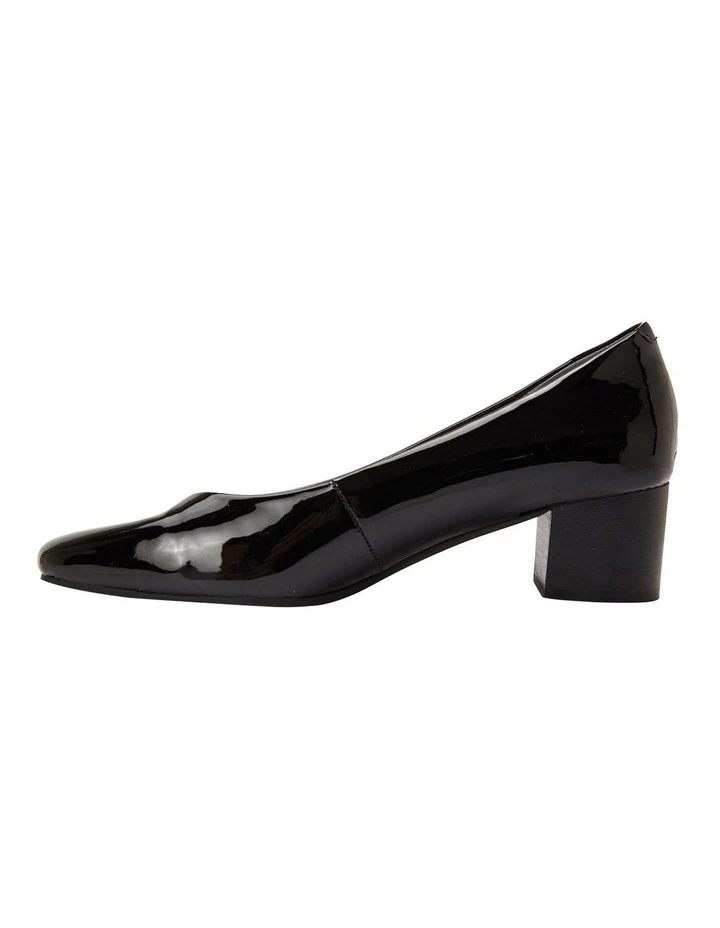 Mid heel classic plain court shoe. C fit design for added comfort. Approx. 5cm heel height Toe shape: Chisel Leather upper Fabric lining Synthetic grip sole Comfort fit (C-fit)