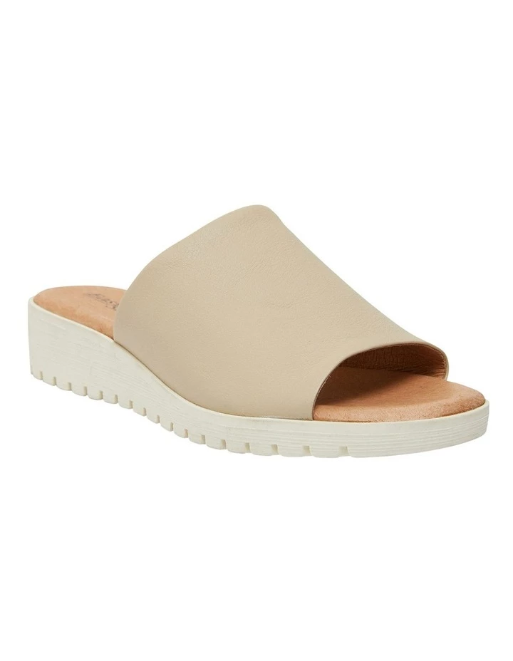 The GENOA slide is a must have pair this season. It features a wide front strap to keep feet secure, along with a cushioned foot-bed for a comfortable fit and a contrast flat form sole for that on-trend touch. Approx. 3.5cm Heel height Leather Upper Leather Lining Leather Sock Synthetic sole Comfort fit (C-fit)