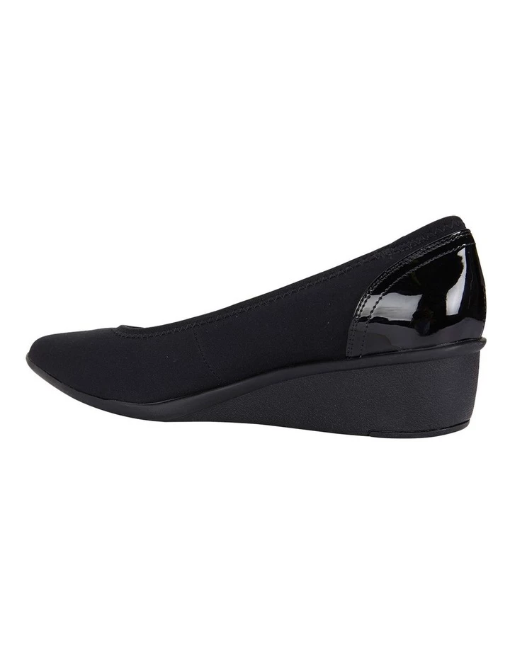 PRAGUE boasts all day comfort! Dressed with a stretch fabric upper and low wedge heel for added support, this pump has your desk days sorted. Designed for a comfortable C-fitting. Approx 4cm heel height Fabric Upper Synthetic Lining Synthetic Sole