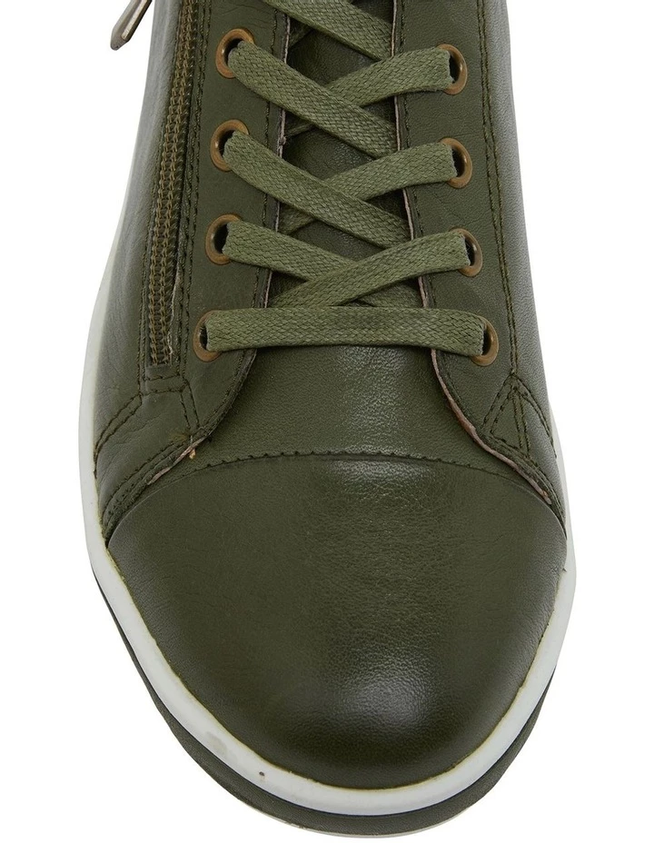 WHISPER is crafted with European leather, inside and out, and set upon a flexible rubber outsole with a side zip detail. It features an inlayed strip of upper material for a casual look.