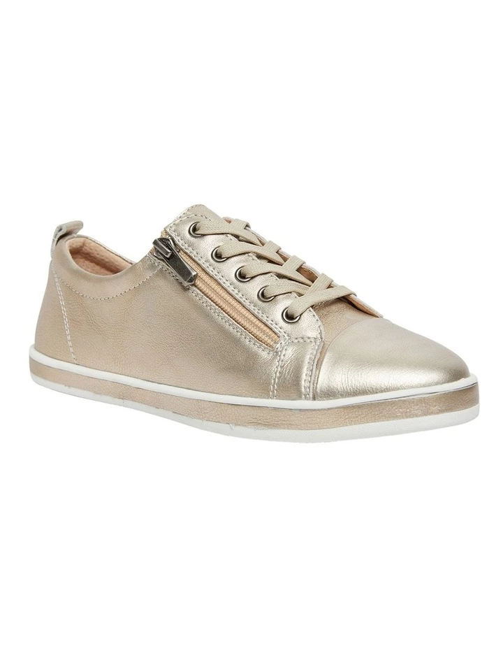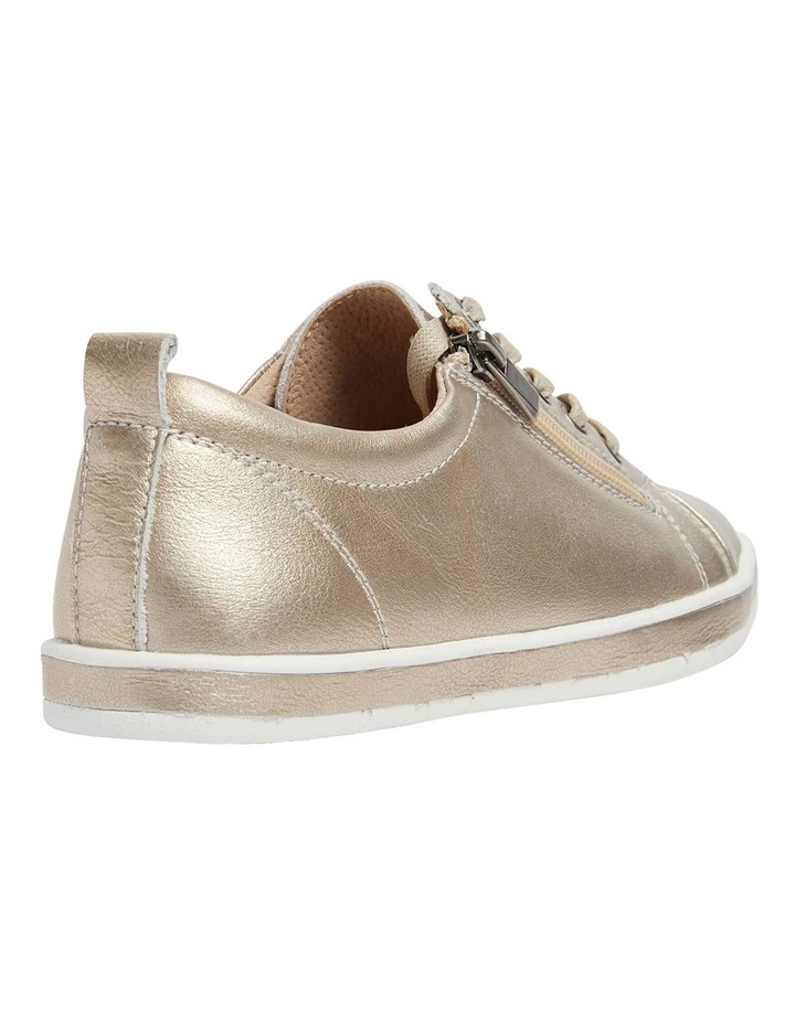 WHISPER is crafted with European leather, inside and out, and set upon a flexible rubber outsole with a side zip detail. It features an inlayed strip of upper material for a casual look.