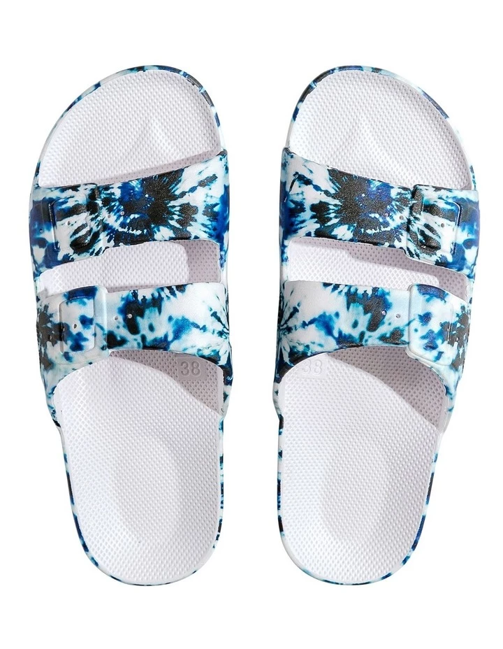 Freedom Moses are all about celebrating summer 365 days a year. Freedom Moses slides are vegan, cruelty-free and injected with air so you feel like youre walking on a cloud. All slides are lightly scented with milk and honey, helping you feel calm and carefree throughout the day.