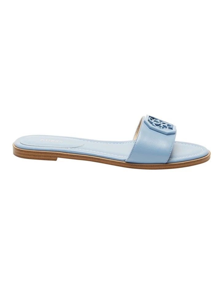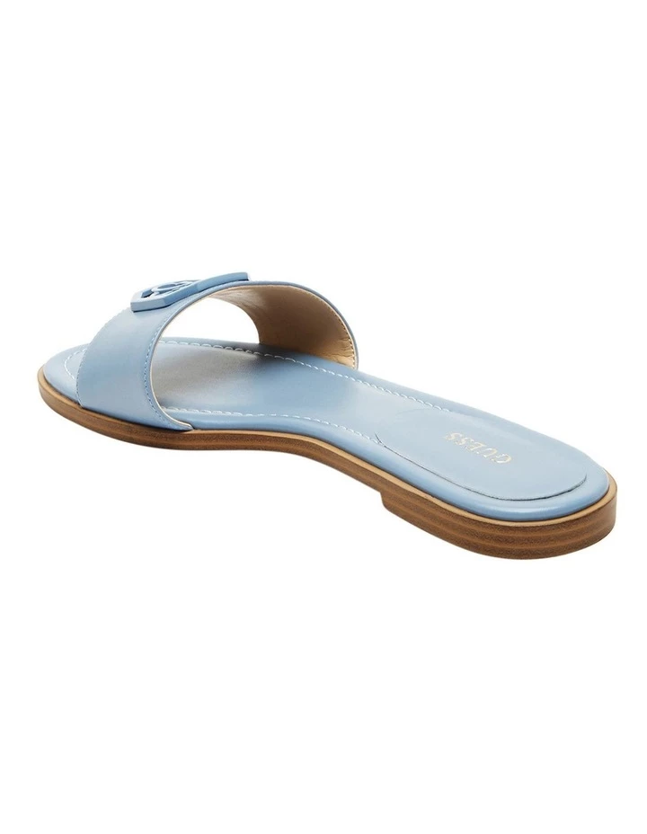 The perfect flat to slip into with a sun dress, palazzo pants or shorts, these bold blue Guess Botali slides feature a raised logo and open toe.