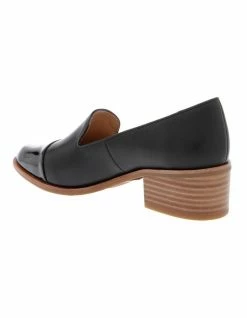 Zazou Aspen Black Leather Stacked Heel Loafer