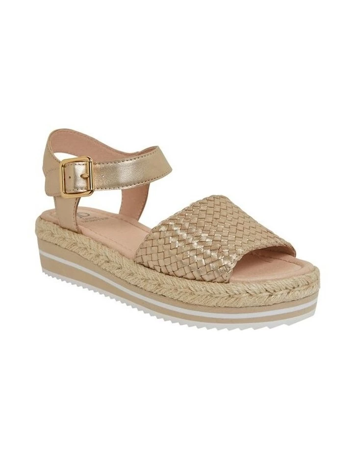 DEBBIE is a refreshing take on the summer sandal combined with traditional espadrille features. They’re crafted using a woven leather upper on the toe vamp and an adjustable ankle fastening, while the stitched raffia midsole rests on a raised synthetic sole accented with a co-ordinating piping.