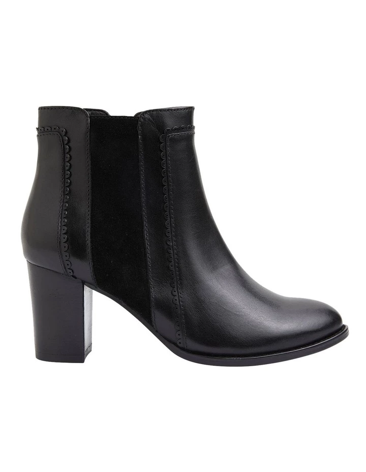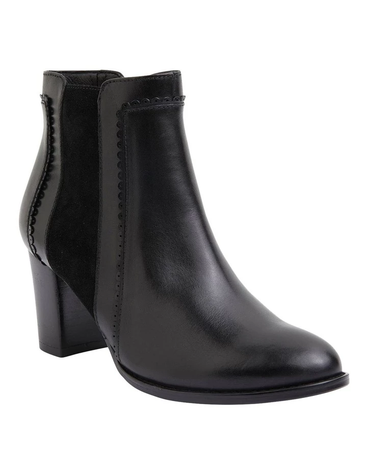 The GALILEO boot has the best of both worlds. Showcasing a leather panel at the front and a soft suede detail in the middle. Featuring and almond toe and sitting on a 5.5cm block heel, you won?t want to take them off. Approx. 7cm heel height Leather upper Leather lining Synthetic sole Standard fit (B-fit)