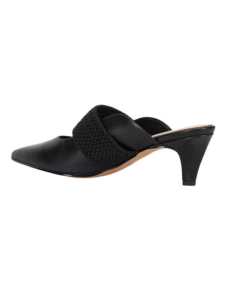 The Symbol low heel shoe showcases simplistic elegance. The slip-on mule offers a modern silhouette with statement weave detailing across the foot and falling to a sleek pointed toe. Symbol is set upon the perfect heel height for an all-day wear and is the perfect addition to your wardrobe this season. Approx. 5.5cm heel height Toe shape: Point Leather and fabric upper Leather lining Synthetic sole Standard fit (B-fit)