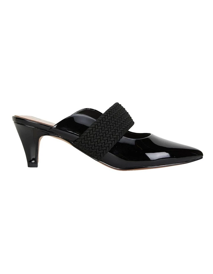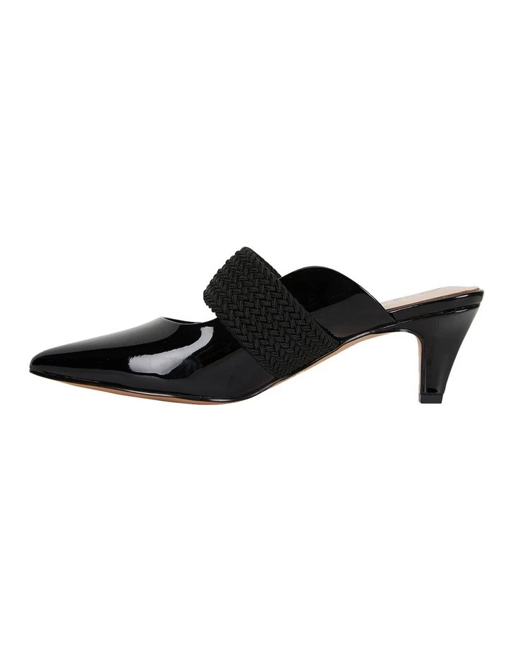 The Symbol low heel shoe showcases simplistic elegance. The slip-on mule offers a modern silhouette with statement weave detailing across the foot and falling to a sleek pointed toe. Symbol is set upon the perfect heel height for an all-day wear and is the perfect addition to your wardrobe this season. Approx. 5.5cm heel height Toe shape: Point Leather and fabric upper Leather lining Synthetic sole Standard fit (B-fit)