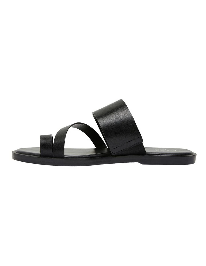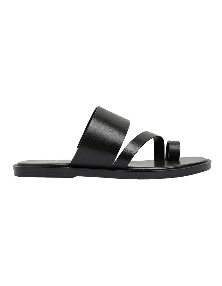 Timeless and trendy, the TIBET flat sandal boasts chic versatile styling with a unique asymmetrical strap and single toe ring. The cushioned foot-bed and soft premium leathers make this sandal as comfortable as it is stylish. Wear your pair this season with light tailored denim and a crisp white blouse. Approx. 0.5 cm heel height Leather upper Leather lining Leather sock Synthetic grip sole Round toe shape design Added underfoot padding Standard fit (B-fit)