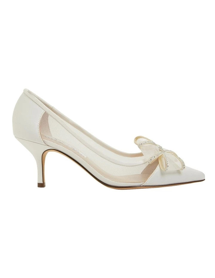 From red carpet to evening looks, BRITE features feminine aesthetics perfect for elegant dressing. The point toe silhouette is adorned with a crystal embellished bow, mesh side panels for a barely there effect, and then set on a slender heel.