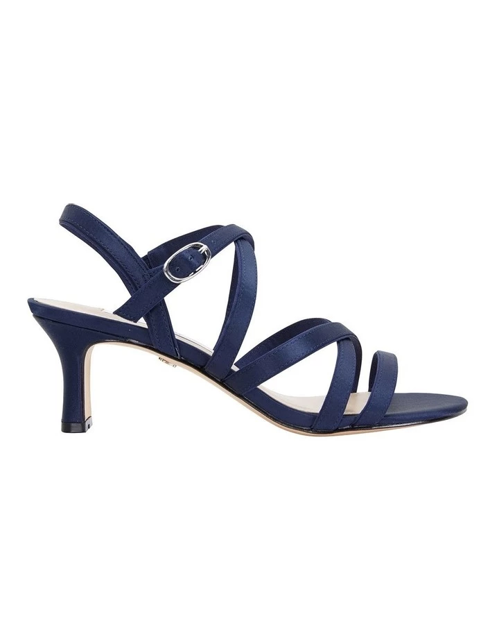 Be prepared for any wedding or special occasion with these glossy sandals with cross over straps for a contemporary vibe and comfortable low heel.