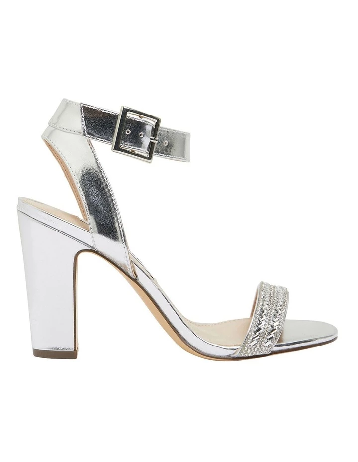 The Sharon high heeled sandal by Nina features an open back design accompanied by a wrap around ankle strap, comfortable block heel and jewelled encrusted toe strap. This elegant style has all the ‘glitz and glam’ you need for your next event.