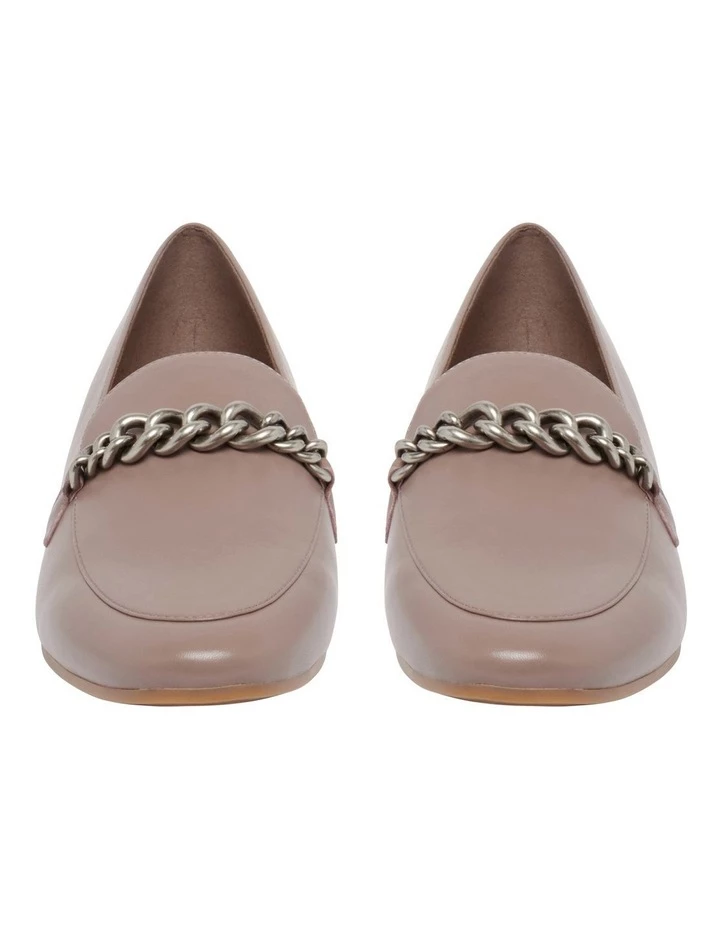 Simple and elegant, the Ashtyn Flat is crafted from soft leather and designed to be a timeless classic for your shoe-drobe. Featuring a rounded toe front and plush footbed, Ashtyn’s embellished chain detail steals the spotlight. The sleek chain adds a contemporary twist to this otherwise minimal loafer.