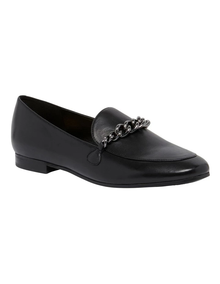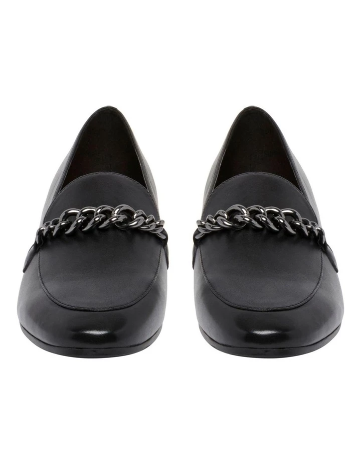 Simple and elegant, the Ashtyn Flat is crafted from soft leather and designed to be a timeless classic for your shoe-drobe. Featuring a rounded toe front and plush footbed, Ashtyn’s embellished chain detail steals the spotlight. The sleek chain adds a contemporary twist to this otherwise minimal loafer.