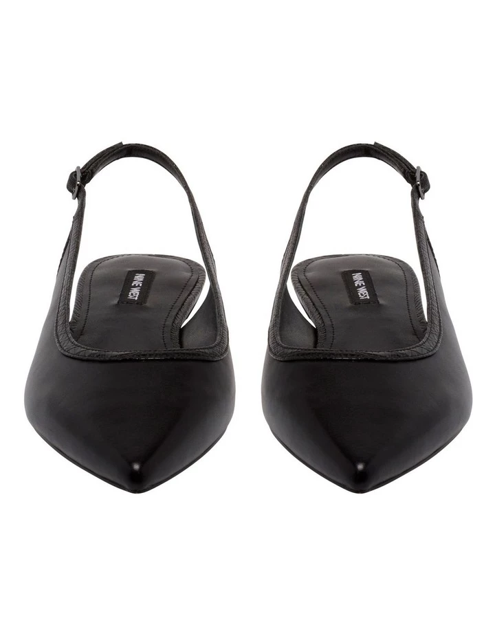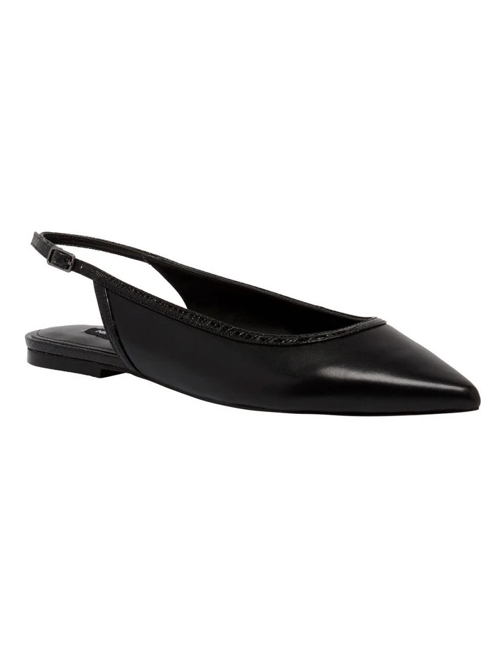 Stay on point in the Brin Flat. Featuring sleek and stylish minimalism design, this pointed toe, sling back ballet flat is chic and sophisticated seamlessly transitioning you from work to weekend. This classic staple is constructed by a comfortable and plush footbed and defined by it’s two-tone textured detailing.