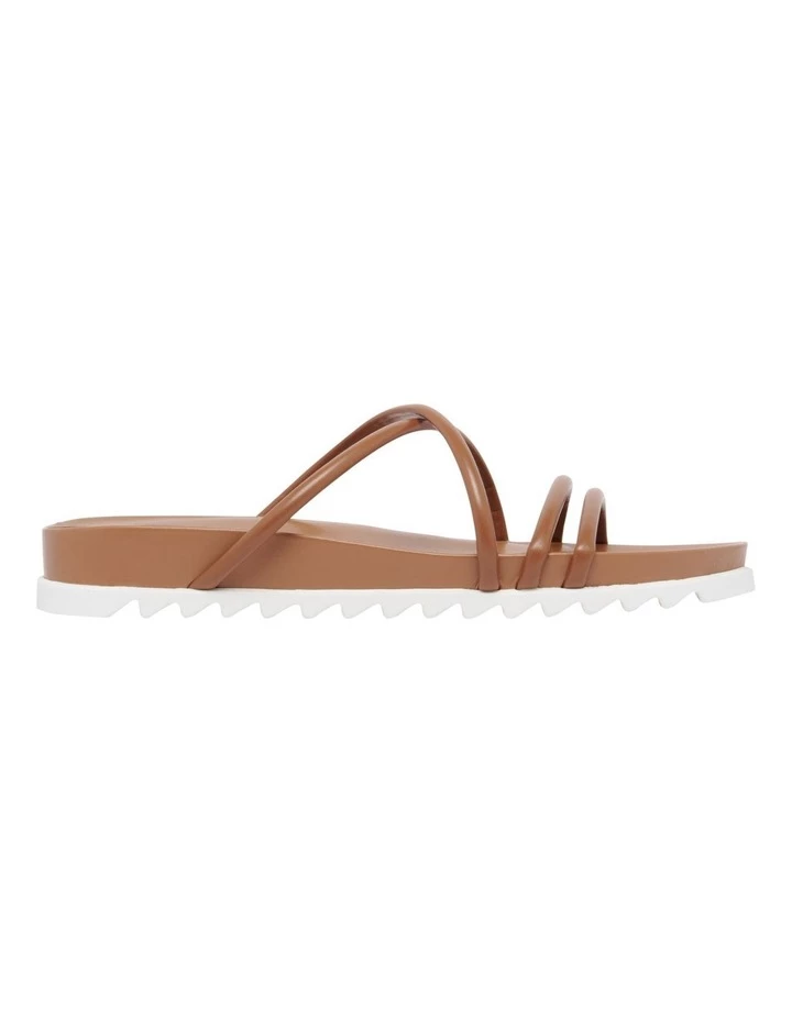 Slide into effortless style and comfort with the Calm Sandal. This cool and refreshingly simple flat sandal is ideal to take you from beach to casual dinner dates. Defined by a rounded toe, plush footbed, trendy scallop sole and delicate cross over straps across the vamp, Calm will seamlessly slide into your spring summer shoe-drobe.