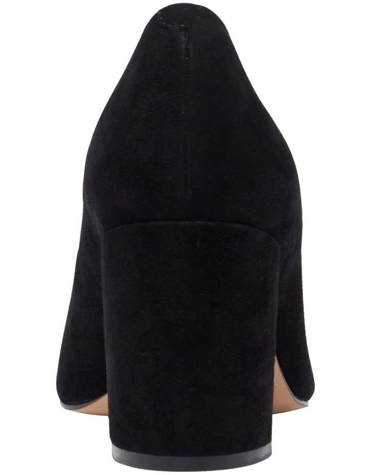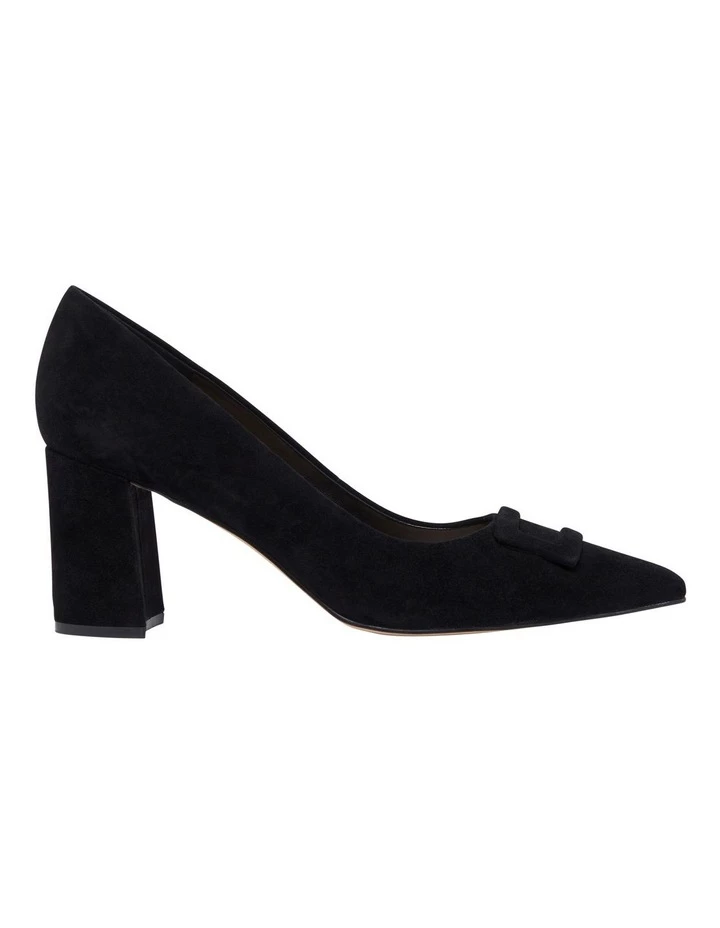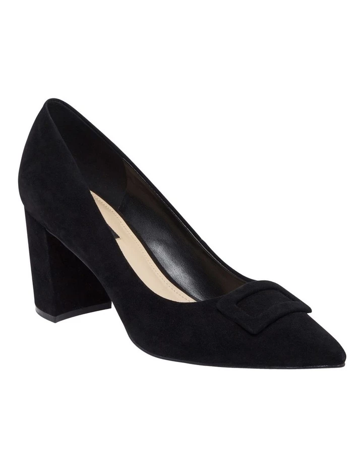 The sophistication, style and suede of the Codi Pump is what makes this classic block heel, pointed toe pump the Prince Charming of your shoe-drobe. The faux buckle embellishment rests on top of the front, creating an eye-catching glimmer to this elegant pump. Codi will be taking you from desk to dinner every day of the week.
