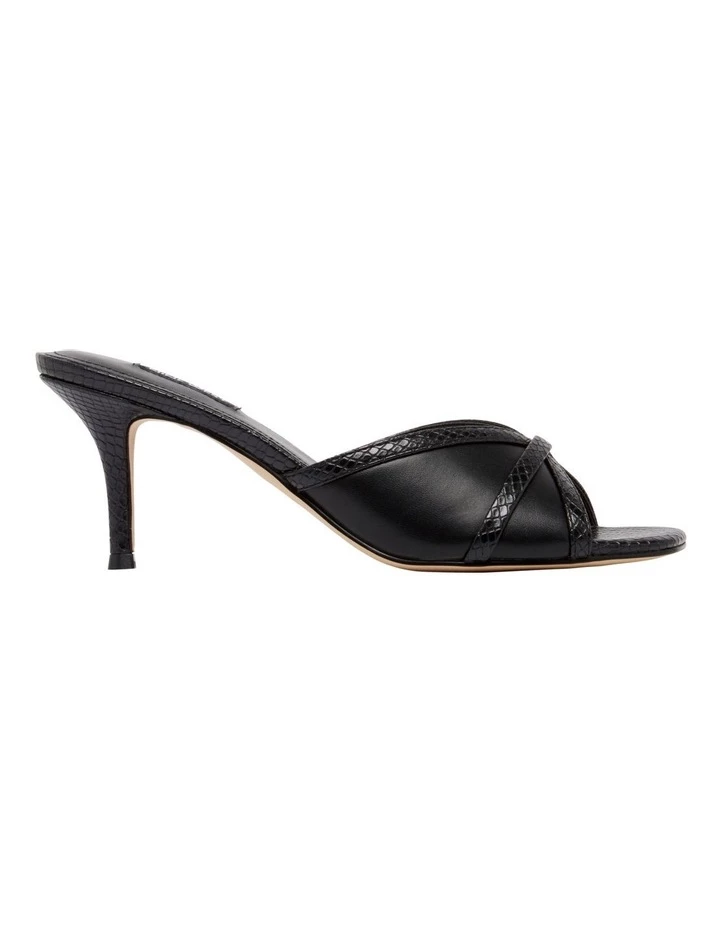 This square toe mule is your new best shoe friend. Dainty features a mid heel height with a stable stiletto heel and comfortable footbed, keeping you in check all night long. This two-tone design is on-trend, add a little black dress and accessorise to suit.