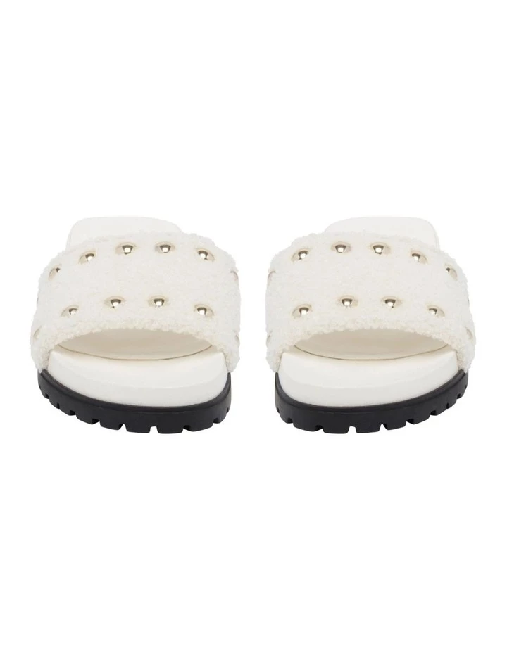 Feel fun, funky and fancy in the Freely Sandal. This flat summer slide has a sturdy and chunky sole adding an element of depth into this favourite summer slide silhouette. The cosy texture of the wide band across the vamp and toes together with its rounded stud embellishments create an on-trend and fashionable characteristic to this everyday summer staple. The comfortable footbed of Freely means this sandal is the ideal summer companion to transition you from brunch to beach.