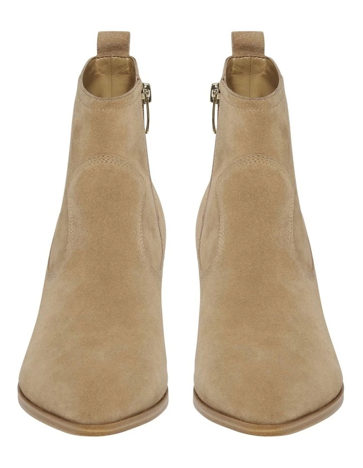The Javan Boot is a classic Chelsea Boot silhouette featuring a pointed toe front, low block heel and a pull-on tab at the back of the ankle and a side zip making an easy wear. The Javan Boot is stylish and versatile, embellished with delicate, western style stitching which creates an eye-catching gaze to this modern staple.