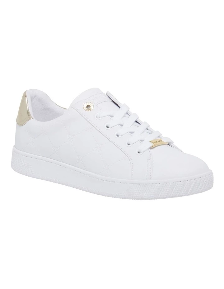 The Jive Sneaker will add groove and glamour to your work and weekend looks. Featuring a lace-up design, rounded toe and comfortable footbed, Jive is easy to slip into and it’s comfort does not comprise on it’s style. The side of the Jive sneaker is embossed with an all-over Nine West logo print. Joining the logo-mania trend, the Nine West Jive Sneaker is stylishly cool yet elegantly timeless and is a must for every shoe-drobe.