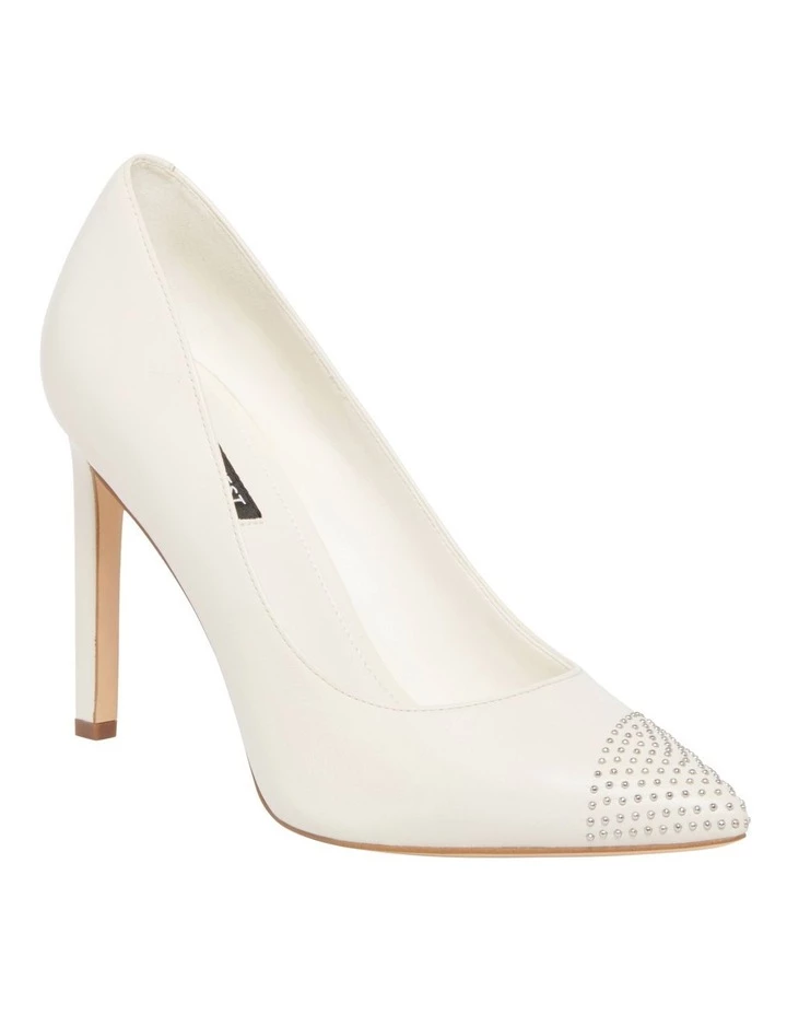 Show off in the Tadaa Pump. This classic and timeless go-to pump silhouette will steal the spotlight and inspire getting dressed up with its embellished detail. Constructed with a slender stiletto heel and pointed toe, this elegant silhouette is complimented by the trendy stud embellished details on the toe. Add height while choosing comfort with this season s new favourite must have.