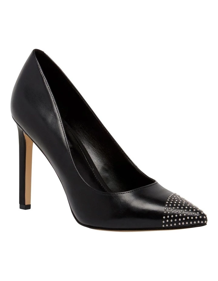Show off in the Tadaa Pump. This classic and timeless go-to pump silhouette will steal the spotlight and inspire getting dressed up with its embellished detail. Constructed with a slender stiletto heel and pointed toe, this elegant silhouette is complimented by the trendy stud embellished details on the toe. Add height while choosing comfort with this season s new favourite must have.