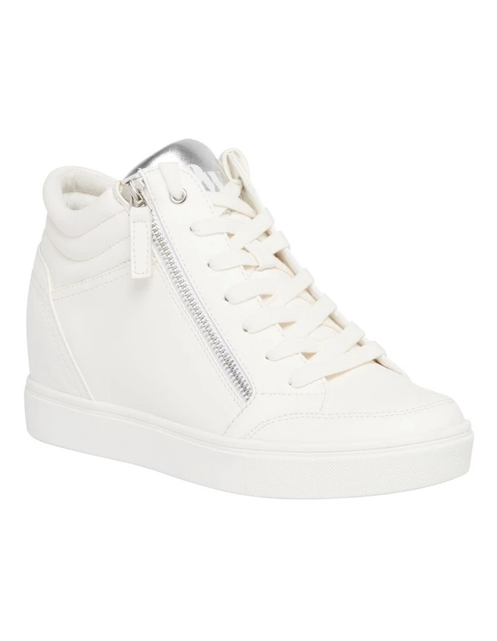 Shake up your Sneaker game with the Tons Sneaker. This trendy wedge sneaker will level up your sports luxe and casual style with its sleek side zip design feature, lace-up functioning and rounded toe. The subtle and understated Nine West logo detailing on the tongue of the sneaker adds to the effortless everyday aesthetic of Tons.Please Note there is a hidden wedge inside this sneaker and heel measurement does not include the white sole.