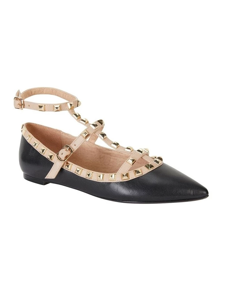 Featuring an adjustable ankle strap, a sleek pointed toe design and studded detailing, this ballet flat will take you from desk to dinner date with ease!