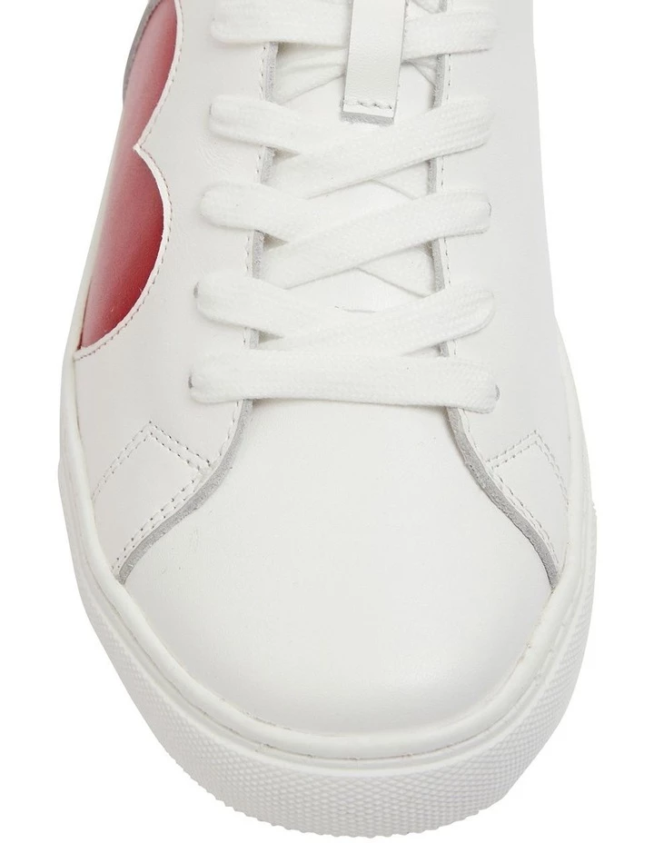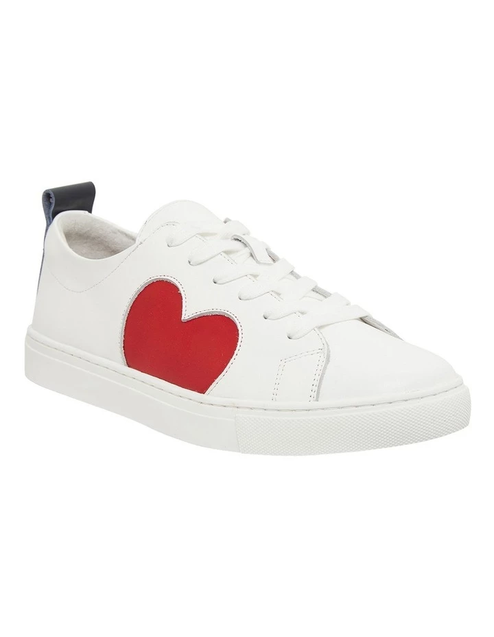 Tap into a playful mood with LOVE. The lace up style is crafted with a leather upper, adorned with a heart cut out appliqu on the side panel and co-ordinating heel patch, then finished on a practical white sole. Slip them on to bring a confident mood to off-duty edits.