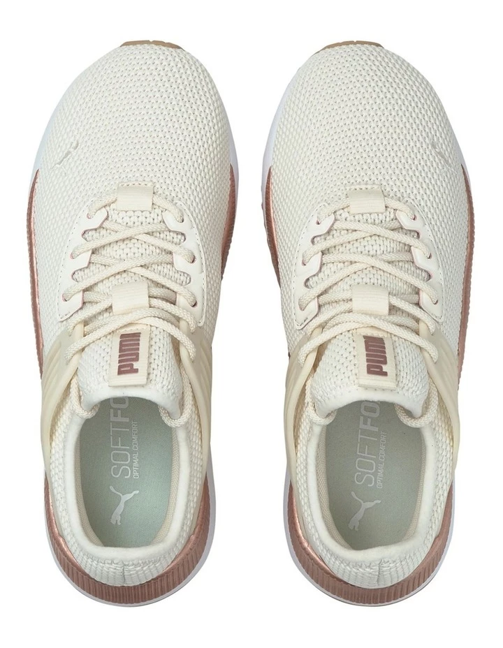The Pacer Future Lux Wn s is a modern street running inspired sneaker. It features a comfortable bootie construction and a TPU cage that gives a great support for the foot, both on lateral and medial side. Together with and interesting midsole design and bold PUMA branding on the heel, this sneaker combines comfort and fashion for everyday usage. This women s specific style features a valuable knitted upper and metallic interest on the midsole. The SoftFoam+ sockliner provides superior cushioning.