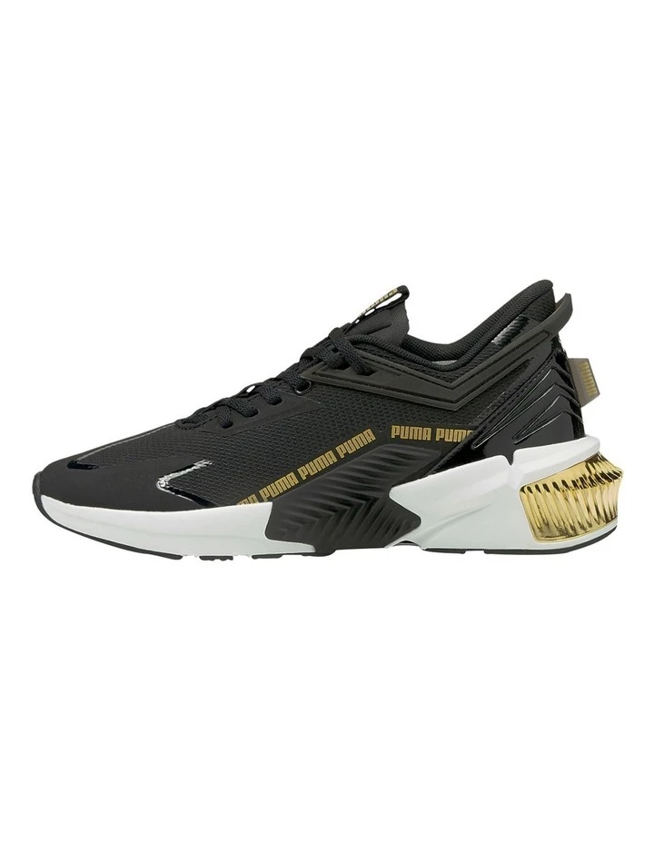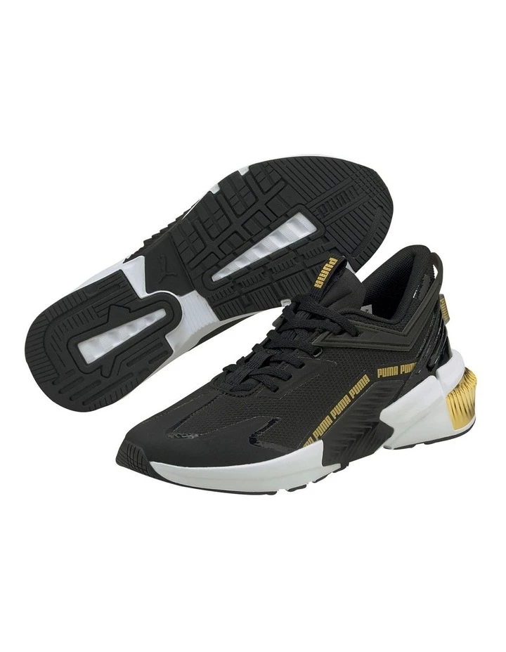 This season we’re bringing a brand new upper to further expand our Provoke franchise. The bold and dramatic aesthetic maintains the same design language as the original, but we’ve made some adjustments to create something totally fresh. We have updated the TPU shapes in the midsole for a different look. We opted for alternative PUMA repeat branding, sans formstrip. We’ve also updated the geometric shapes from the original and implemented new design lines in the toe down.