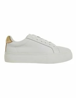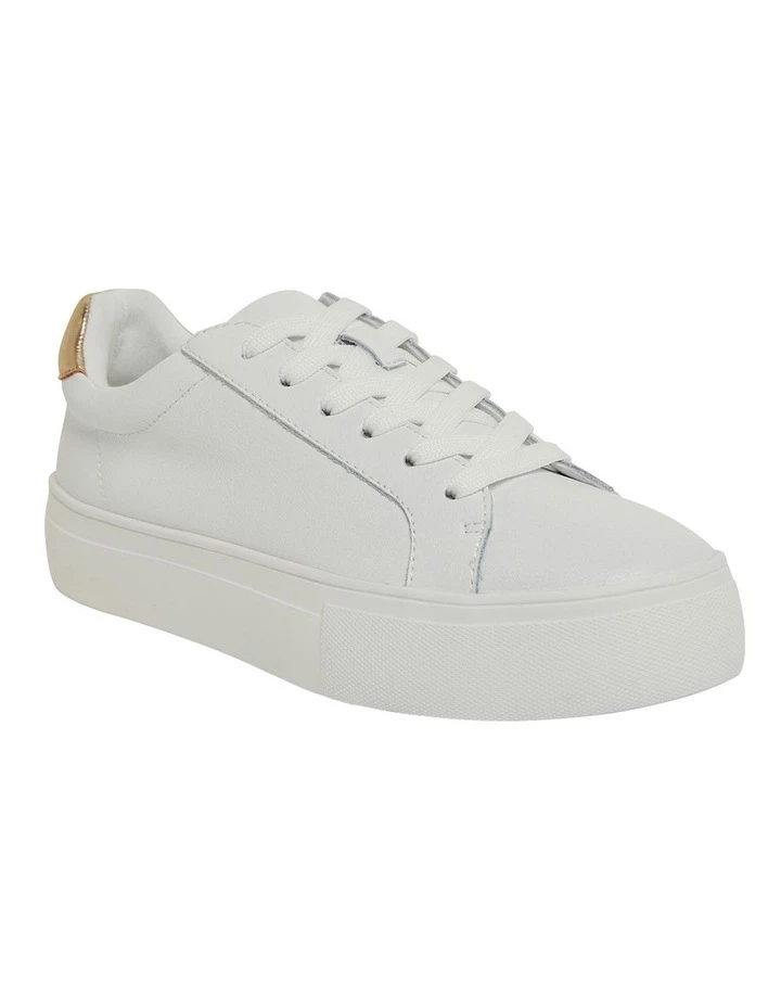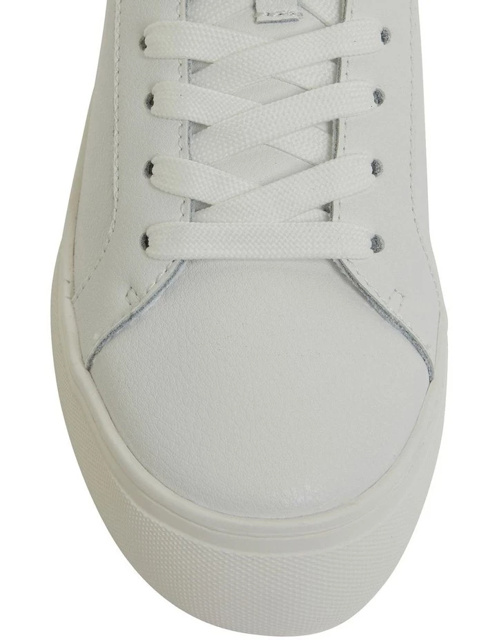 Tap into the elevated minimalism trend with FRENZY. The low top silhouette is crafted with a smooth leather upper, contrasted with a colourful heel tab, then fastened with a lace-up vamp and a thick, elevated sole. Wear them as a casual accompaniment to smart separates.