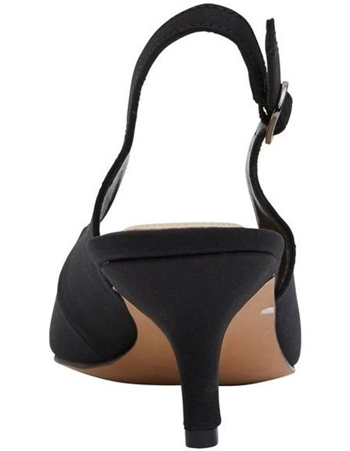 Nina is the ultimate sling-back pump that will take you from desk to dinner with ease. It features a pointed toe design and low heel, making it the perfect combination of fashion and function. Approx. 5cm heel Fabric upper Synthetic lining Synthetic sole Standard fit (B-fit)
